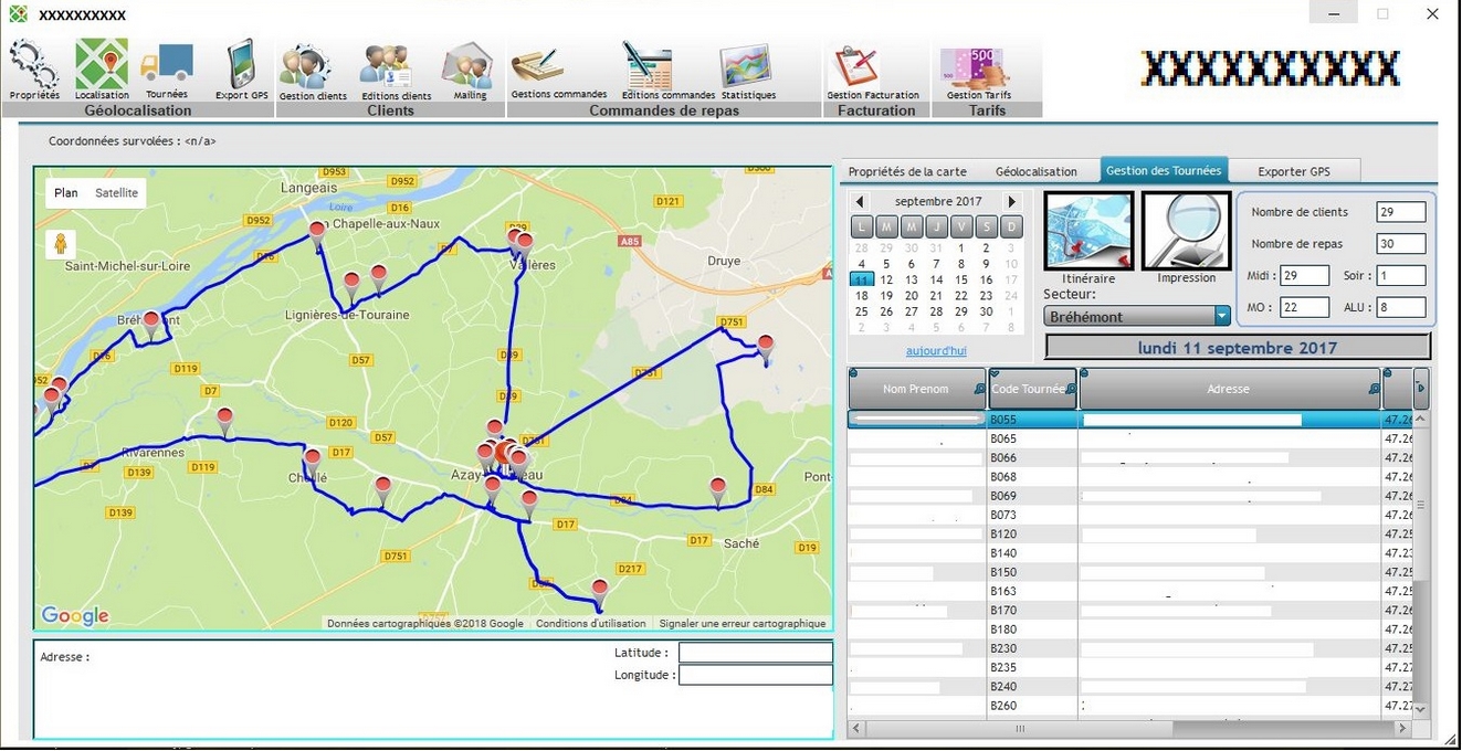 | | | | | VESTA RESTAURATIONLogiciel complet de restauration pour la gestion :- des ingrédients, menus et cartes et leur envoi sur un site web spécialement conçu. - des clients, leurs accès au site web, la récupération de leurs commandes de repas, la production, l'édition des documents, etc.- du colisage (contrôle par lecture codes barres).- de la livraison (secteurs, tournées, optimisation, GPS, etc)- de la facturation, etc.Ce logiciel est développé avec WinDev.